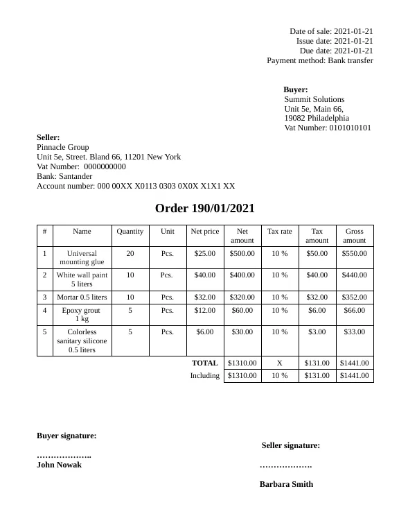 Select the record with the status “Delivered” from the “Menu -> Purchases” list and go to its preview.