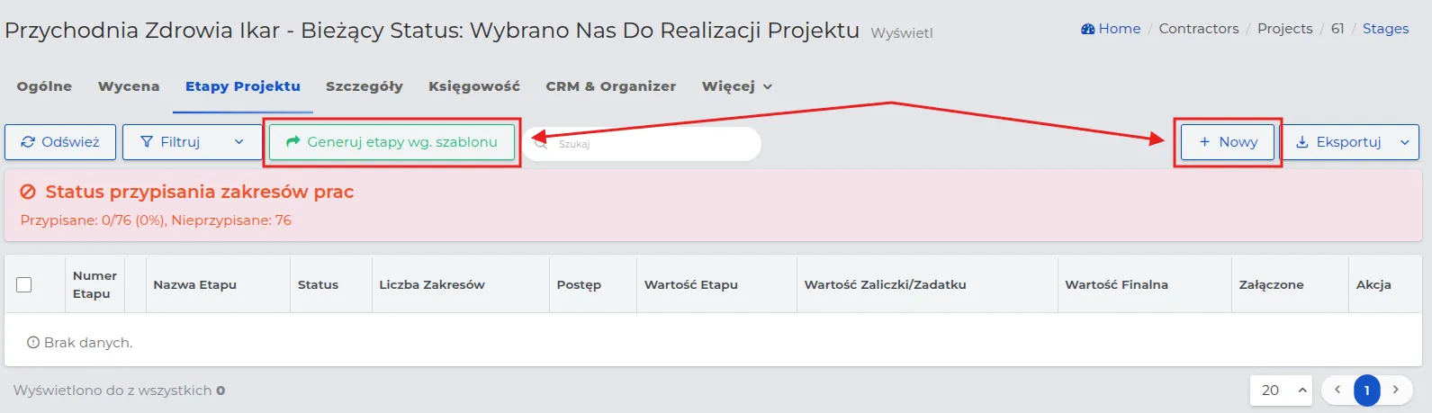 REMEMBER: Before changing the project status, ensure that the stages are correctly assigned – further editing is blocked.