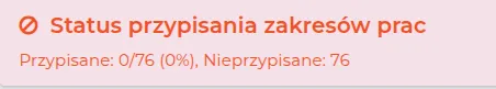 NOTE: The color of the field above the list of stages indicates the progress of assigning work scopes, e.g., red – no assignments, green – all assigned.