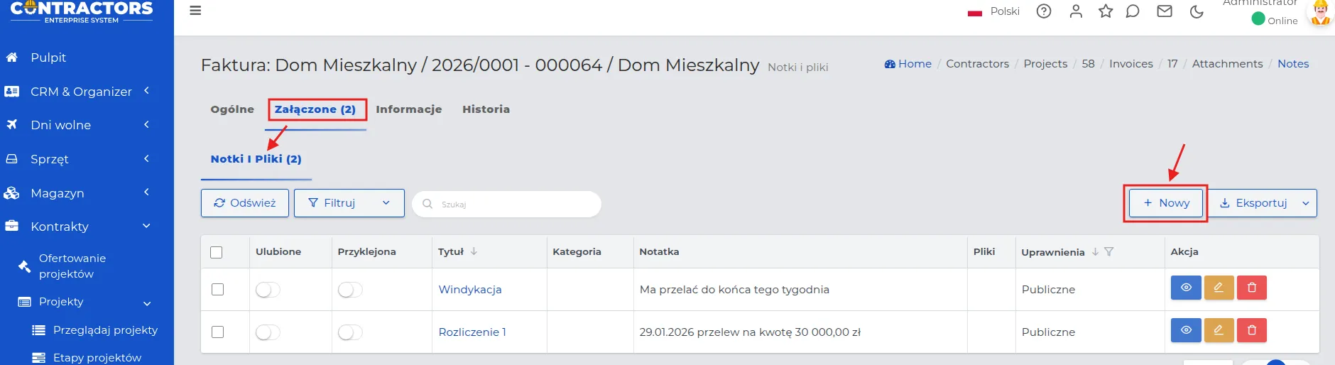 REMEMBER: According to regulations, a subcontractor agreement must be in writing. The completion date specified in the agreement forms the basis for the payment of remuneration for the services performed. Optionally, you can attach it to the “More → Attached” tab in the selected project.