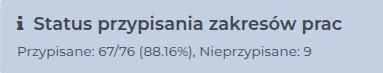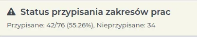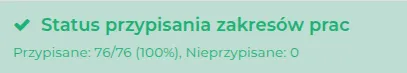 UWAGA: Kolor pola nad listą etapów informuje o postępie przypisywania zakresów prac, np. czerwony – brak przypisań, zielony – wszystkie przypisane.