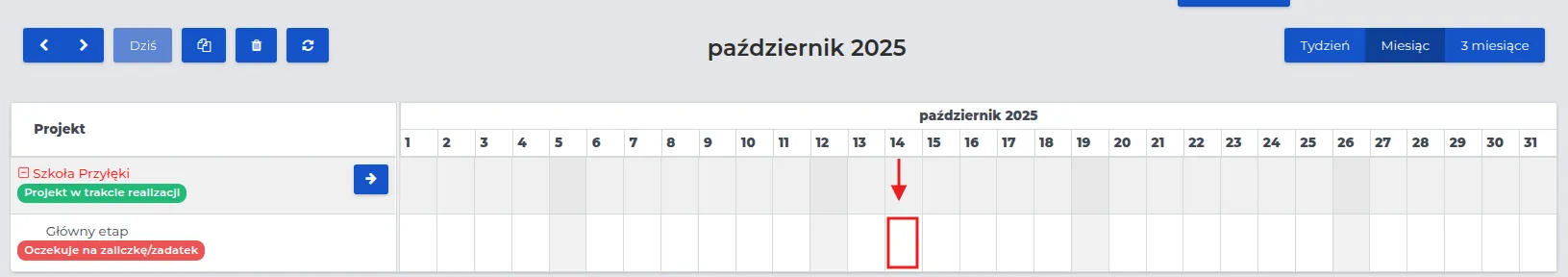 Opcjonalnie zmień interwał czasowy dla sposobu wyświetlania harmonogramu prac, używając przycisków “Tydzień” lub “Miesiąc”.
